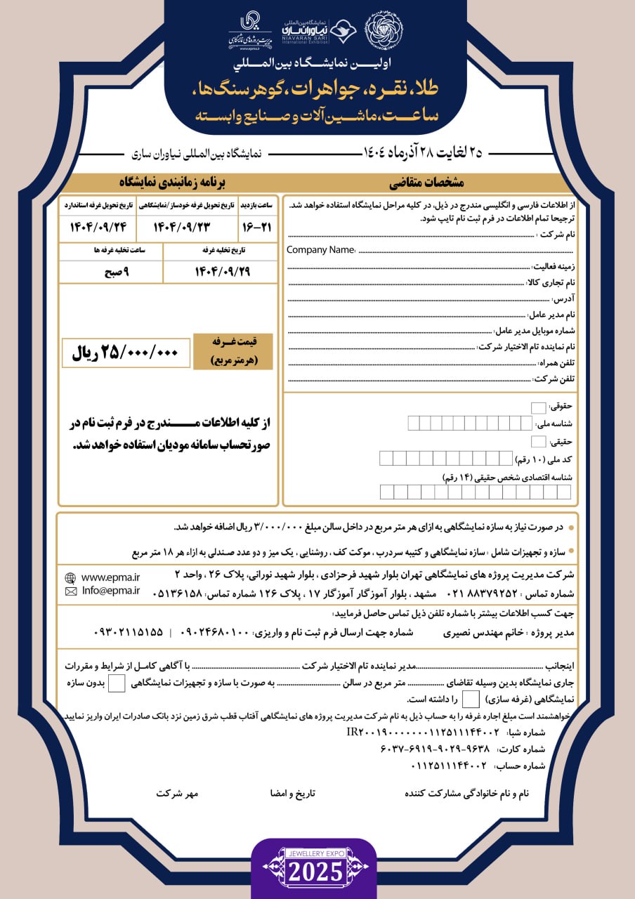 | زمان برگزاری : | 25 لغایت 28 آذرماه 1404 |