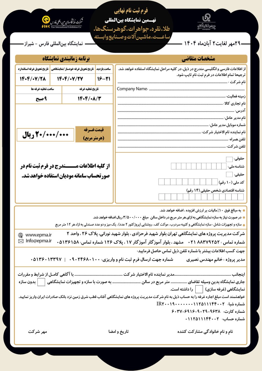 | محل برگزاری : | محل دائمی نمایشگاه های بین المللی استان فارس |