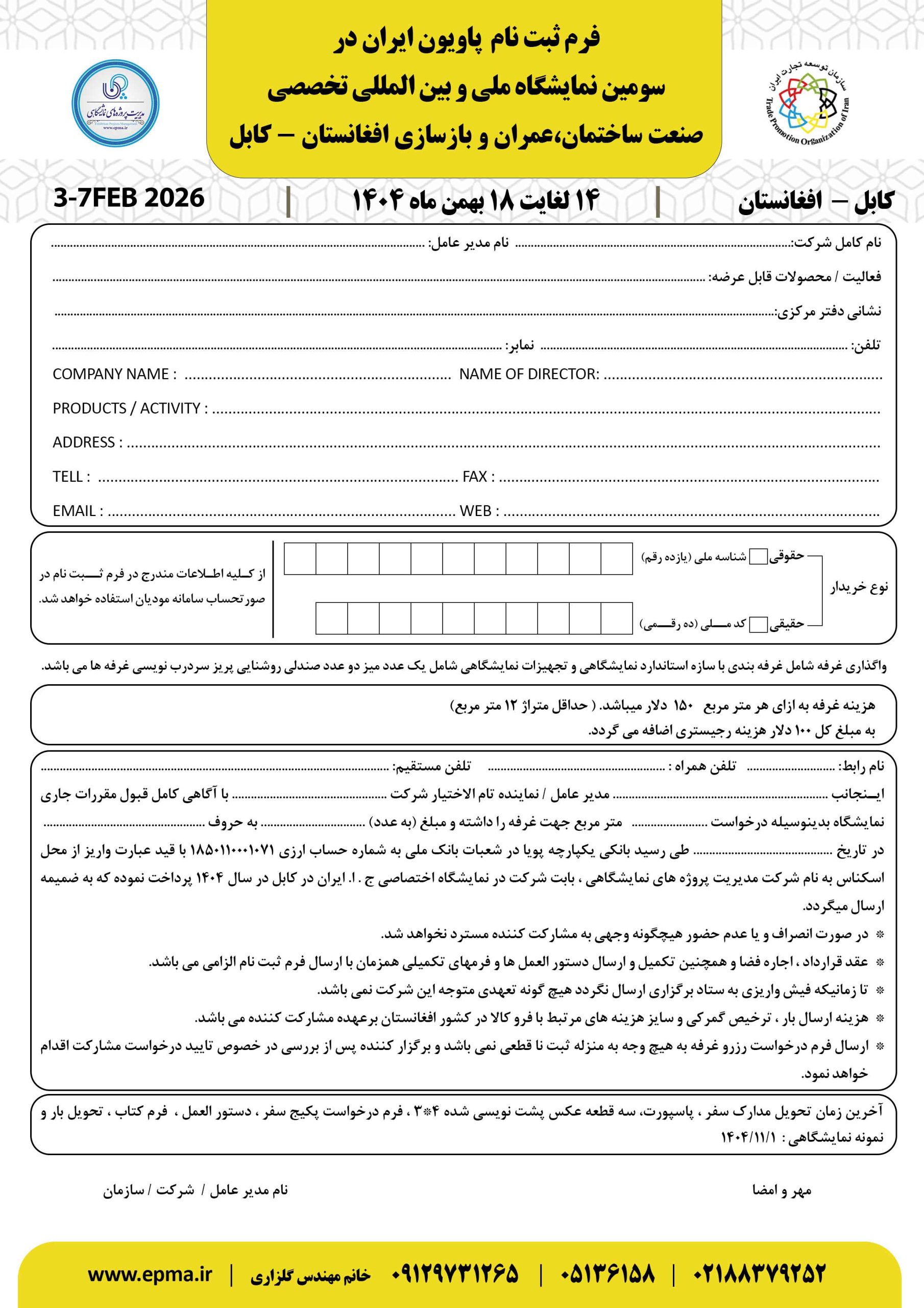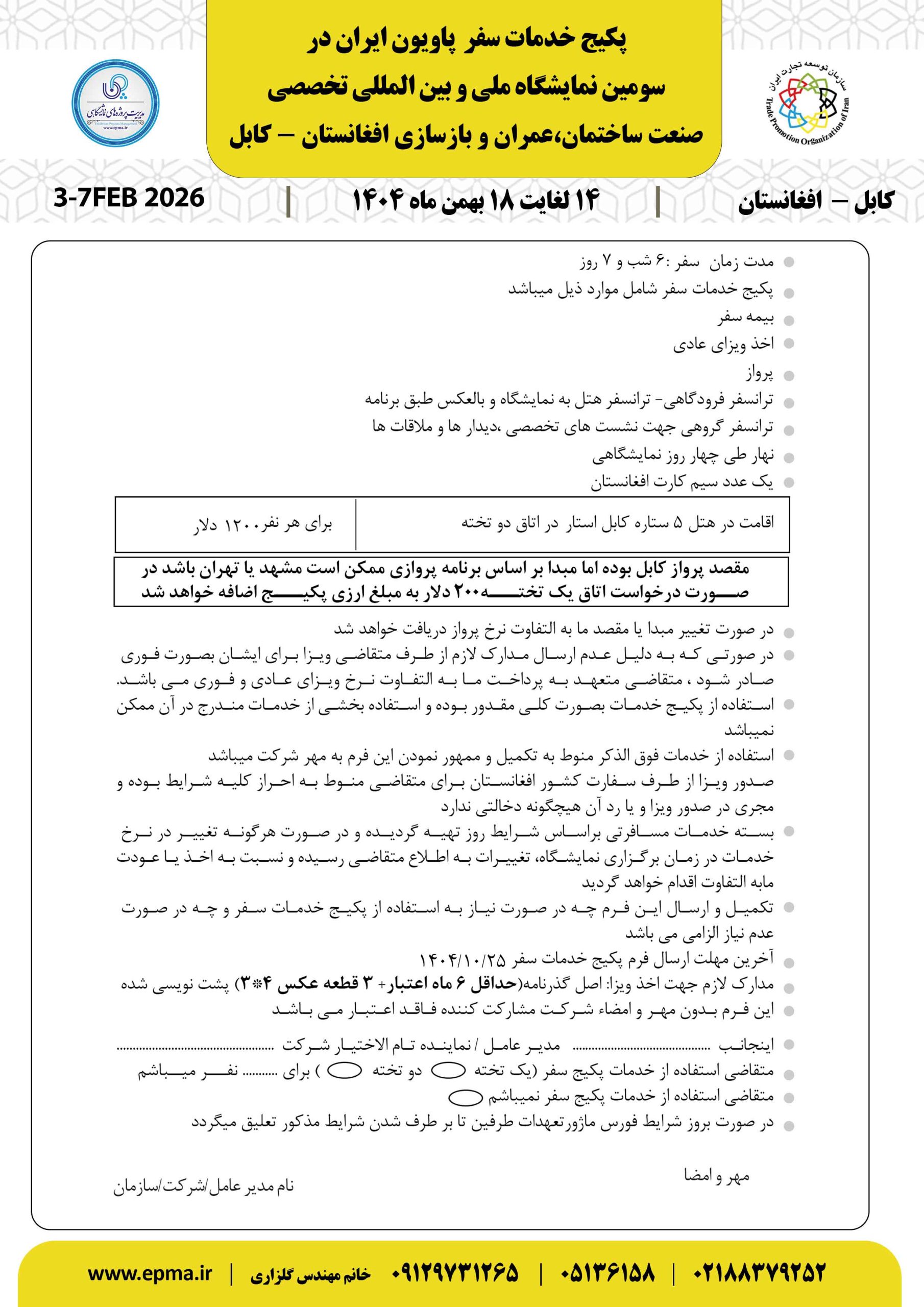 | محل برگزاری : | مرکز نمایشگاه بین المللی افغانستان (چمن حضوری _ کابل) |